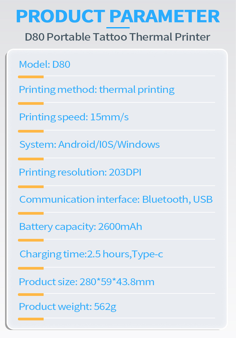 Supported paper type: tattoo transfer paper/thermal sheet/folding paper